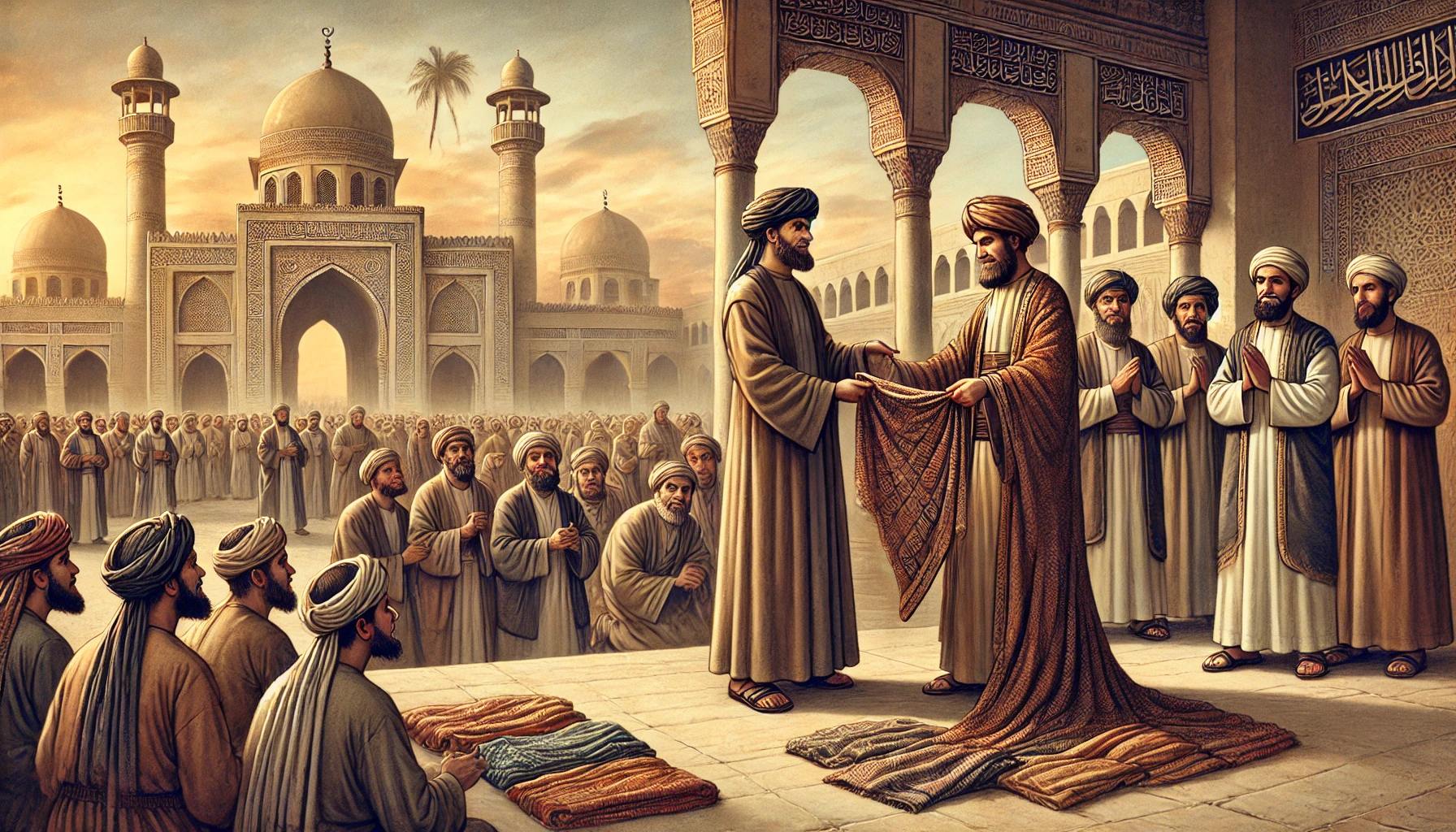 يُروى أنّ أمير المؤمنين عمر بن الخطاب –رضي الله عنه – وزّع على كل رجل من المسلمين قطعة قماش تكفي لخياطة ثوب واحد، ثم أخذ نصيبه ونصيب ولده عبد الله وخاط ثوبه ولبسه.